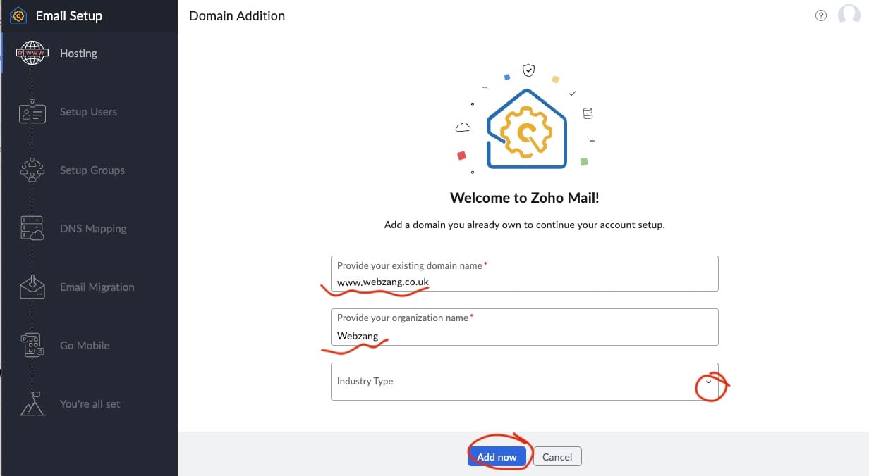 Add your domain, strip out any https:// or trailing /, Add your organisation name and pick an industry that closest matches your business.