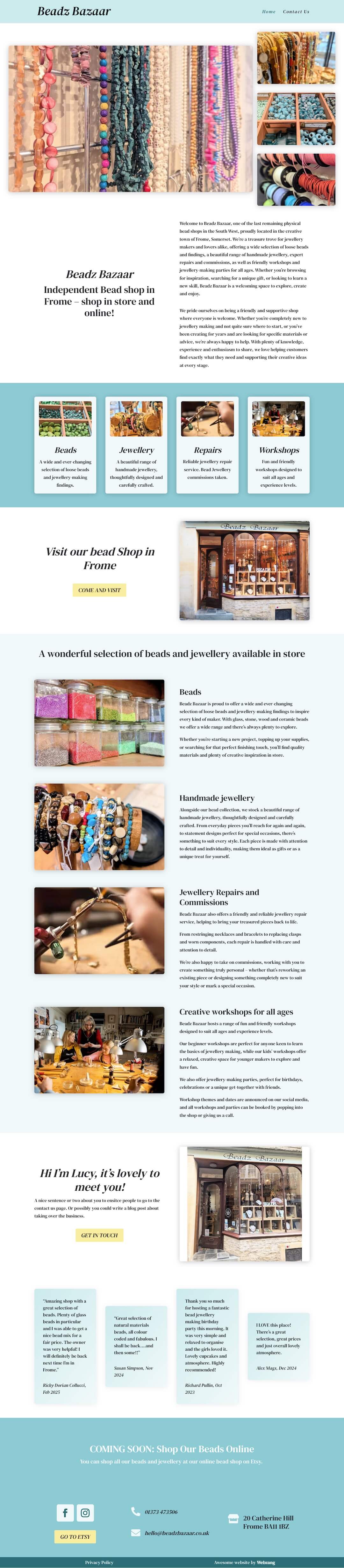 Beadz Bazaar purchased a business and shop in Frome that had been successfully trading for many years with no website. The new owners felt they weren’t fully exploring the potential for online marketing and sales and so we created this brochure site for them with an eye on future expansion.